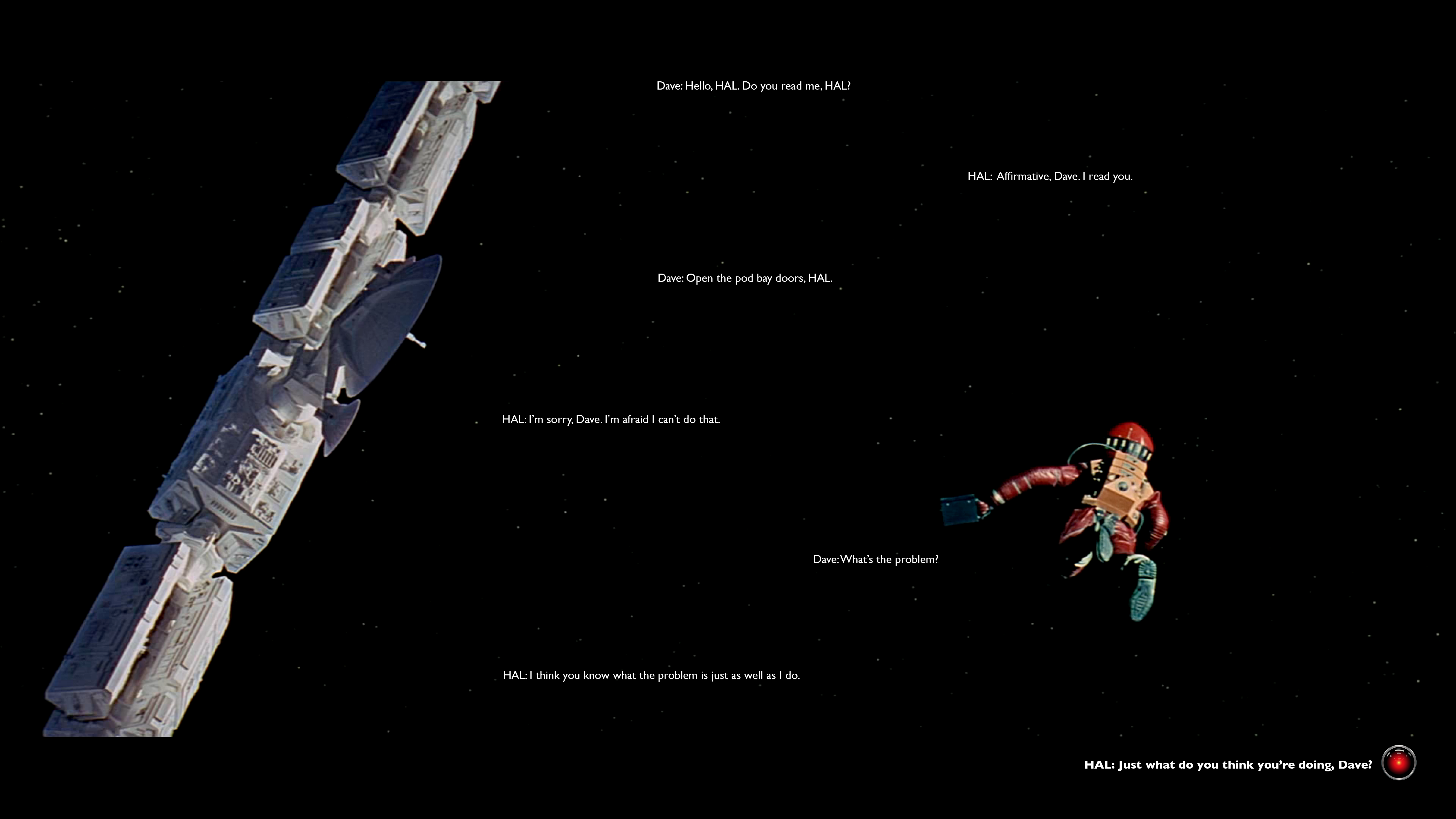 - The button (Hal) will appear last, and when you hover over it, the text "Hal: Just what do you think you're doing, Dave?" will appear in bold.